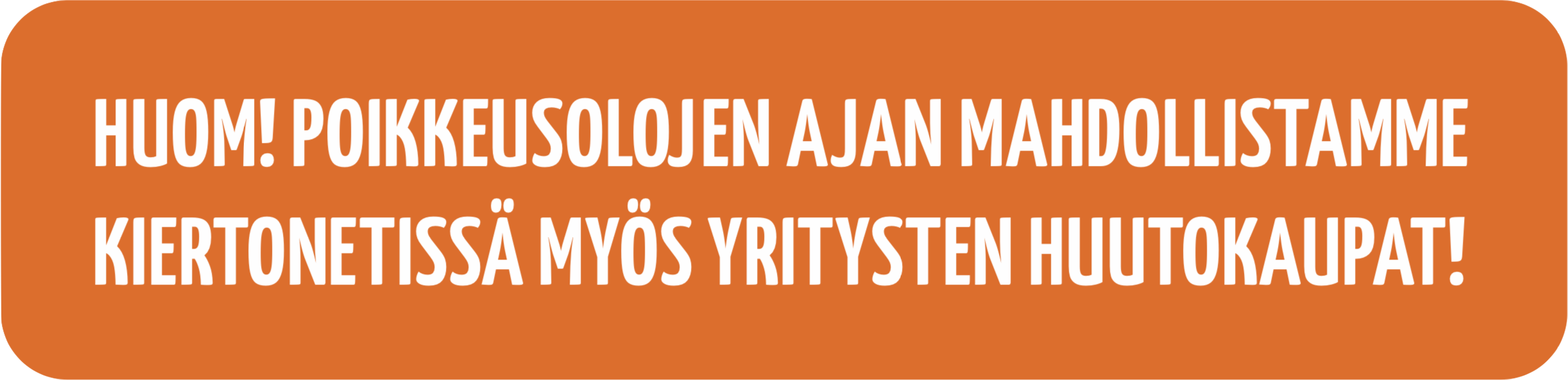 “Olemme aloittaneet välittömästi tarvittavat muutokset palvelun saattamiseksi yritysten käyttöön. Kaikenkokoiset yritykset ovat tervetulleita käyttämään Kiertonetin palvelua poikkeusolojen ajan. Yritysten, joilla on realisoitavaa tavaraa ja halua edistää kiertotaloutta, kannattaa olla välittömästi yhteydessä Kiertonetin myyntiin tai asiakaspalveluun”, Kallunki rohkaisee.